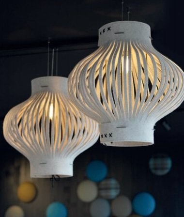 De akoestische hanglamp BuzziLight Mono is duidelijk afgeleid van een lantaarn. Door de bolle vorm met uitgesneden stroken krijgt elke ruimte een sprookjesachtige sfeer.