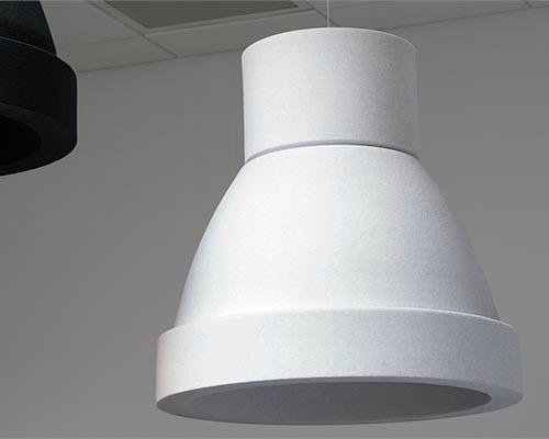 Hanglamp Industry van Akomo is een akoestische lamp, gemaakt van Basotect melamineschuim met LED downlight. De naam van deze akoestische oplossing is geïnspireerd op het industriële karakter van de lamp. Lampen met dit design hingen vroeger in grote fabriekshallen en zijn nog steeds een populaire toevoeging aan elk interieur. Er zijn twee varianten van de Hanglamp Industry, de ene heeft een diepe uitholling aan de onderzijde terwijl de andere juist een ondiepe uitholling heeft.