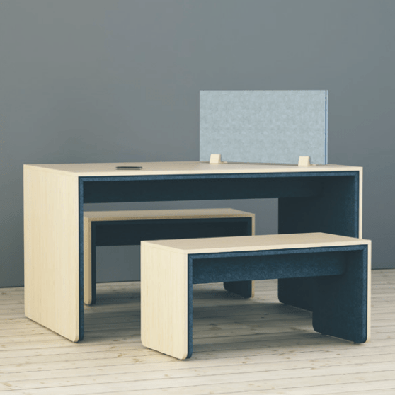 Akoestisch vrijstaand tafelscherm van Glimakra. Verkrijgbaar in de afmeting 600 x 450 x 40 mm of in de groter variant van 800 x 450 x 40 mm en in vier verschillende stofcategorieën.