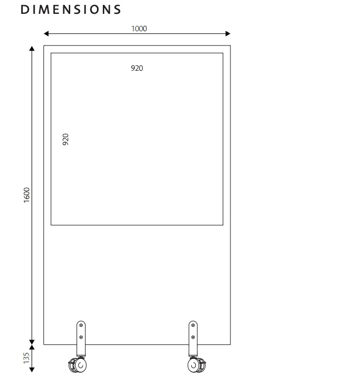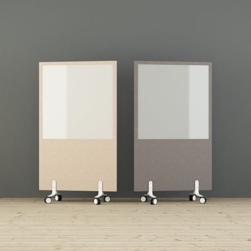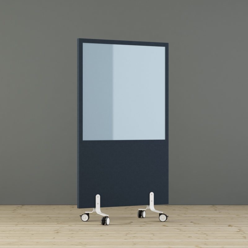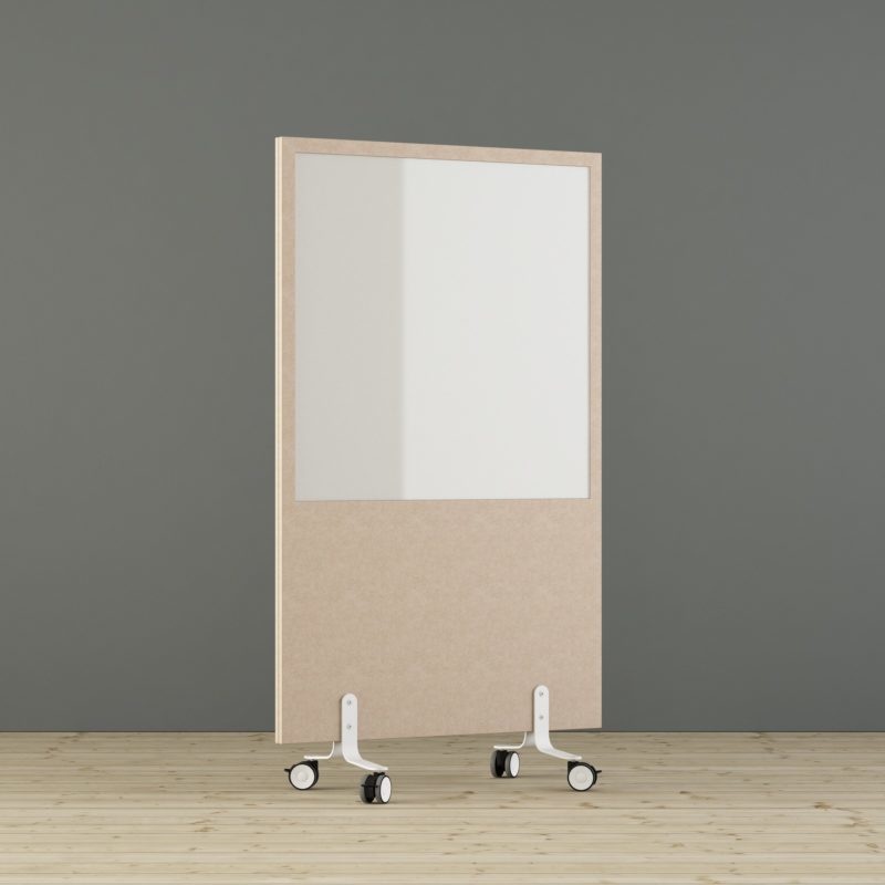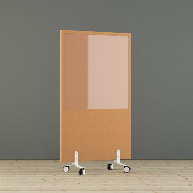 Scheidingswand met magnetisch schrijfbord met wit glas of standaard kleur. Optioneel met wielen verkrijgbaar.