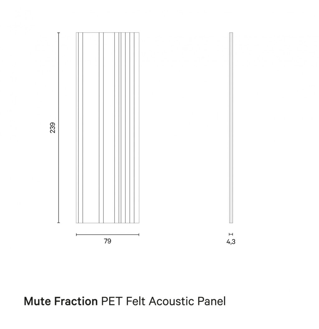 Het akoestische wandpaneel Mute Fraction van De Vorm verbetert in elke mogelijke ruimte de akoestiek. Het wandpaneel kan zowel horizontaal als verticaal bevestigd worden, waardoor het paneel zich ook makkelijk laat aanpassen aan de ruimte. Het design met het hoogteverschil geeft het paneel een speels effect, waardoor meerdere panelen in een ruimte ook voor het oog prettig zijn. De akoestische panelen kunnen direct op de wand bevestigd worden, maar we raden aan om ze iets van de wand af te plaatsen voor maximaal akoestisch effect. Je kan de ruimte opvullen met Rockwool of PET-wool voor het beste resultaat.